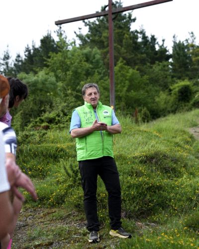 Tras recorrer la mítica vuelta inicial por el pueblo, nos adentramos en el bosque de Zegama. A los pocos kilómetros, en medio de la montaña, nos encontramos con Ramon Malkorra, una de las personas que impulsó la carrera en sus inicios y una de las voces más experimentadas de la organización. También miembro del equipo de medio ambiente, nos explicó algunas de las acciones que se están implementando para reducir la huella ecológica de la carrera e incluso para mejorar el entorno natural.