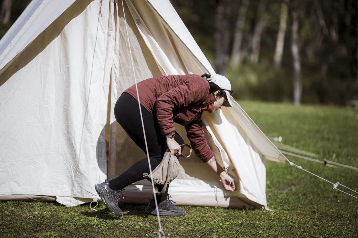 Allí, nuestro grupo acampó en tiendas tipo glamping instaladas en pleno bosque. Por la noche, los sonidos de los alces y las suaves olas del lago cercano nos recordaban que no éramos invitados en ese paisaje: éramos parte de él.