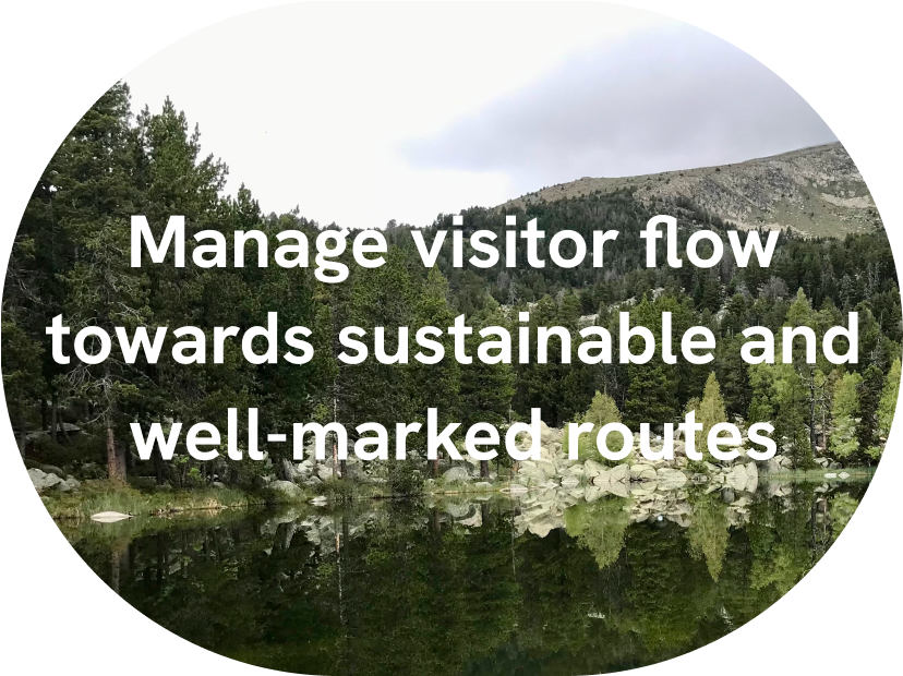 • Renaturalization: Restrict access to unofficial trails in sensitive areas using natural barriers and measures to prevent the formation of new undesired routes.